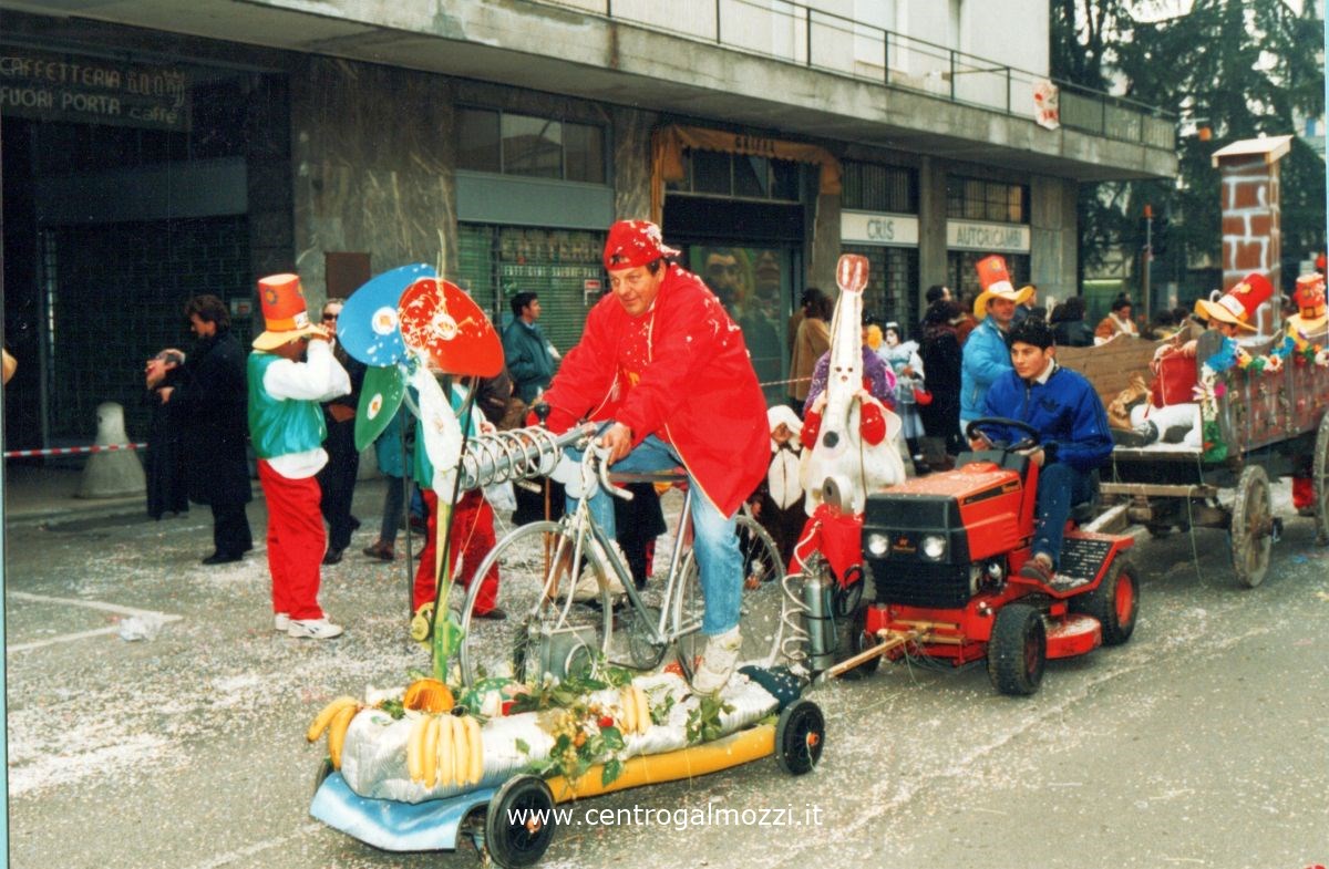 Carro allegorico con un gruppo di persone in via Crispi durante il carnevale