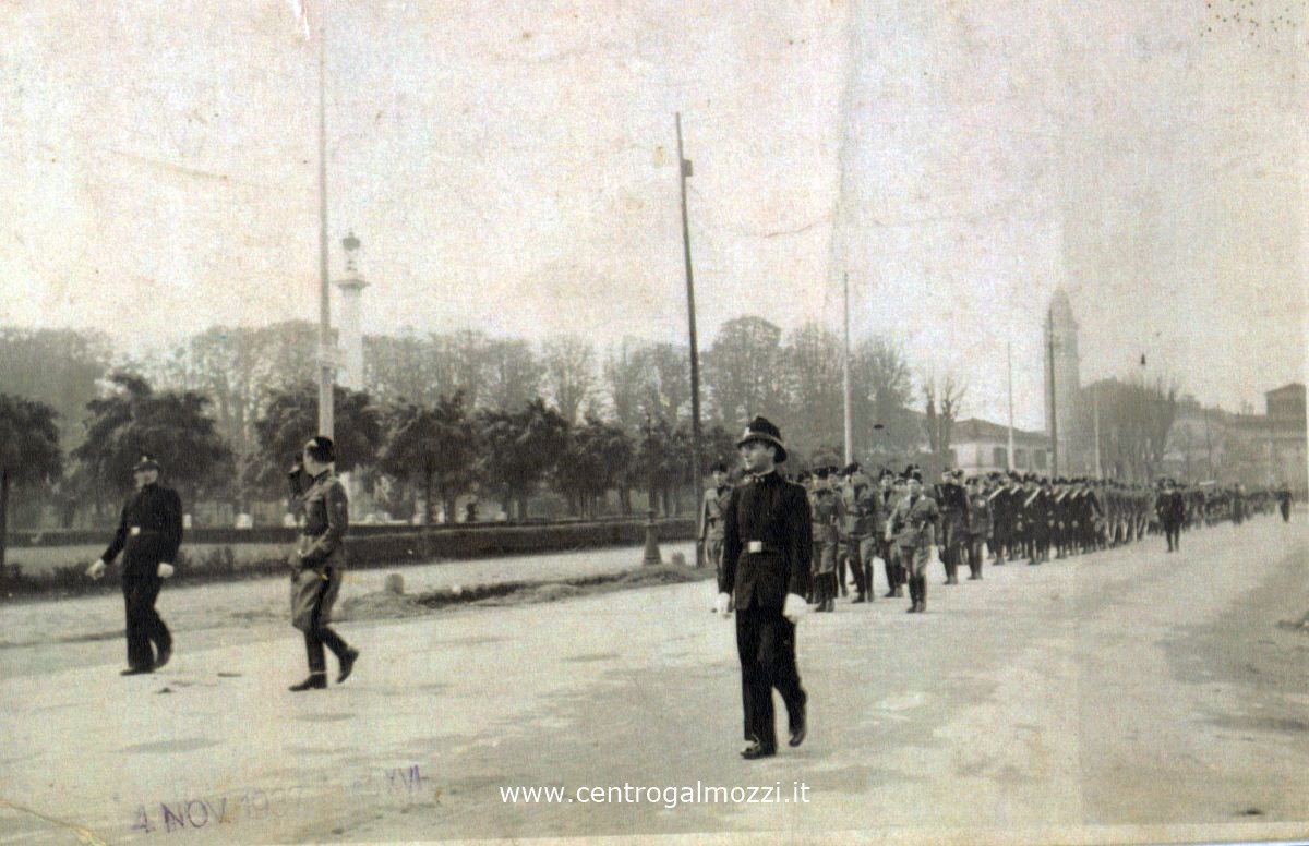Via Cadorna presso il Piazzale delle Rimembranze negl'anni '30. Corteo fascista.